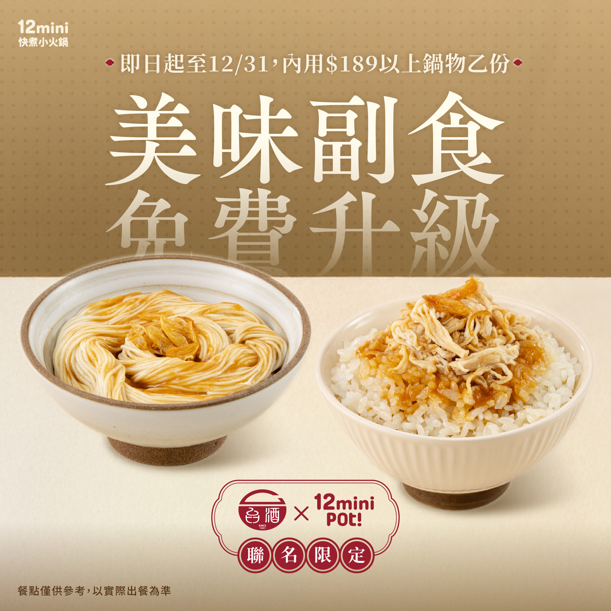 即日起~12/31,憑券內用$189 以上鍋物,5款副食免費升級✨